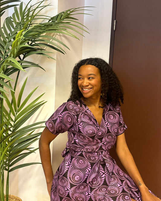 Robe cache-coeur en wax - mauve