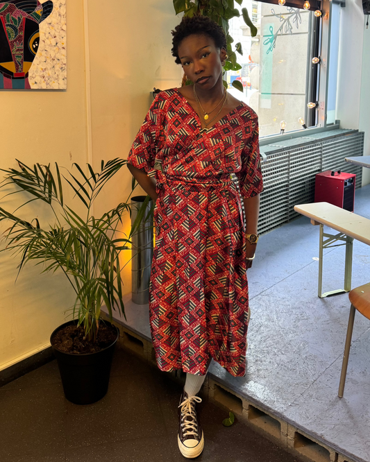 Robe cache-coeur en wax bordeaux
